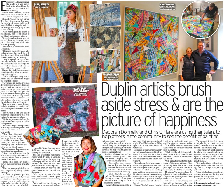 Expression beats depression is the motto of a well known Irish artist who’s lifting the mood of the nation with colour therapy. Dublin artist Deborah Donnelly told how in times of stress art can heal and art therapy is on the rise.